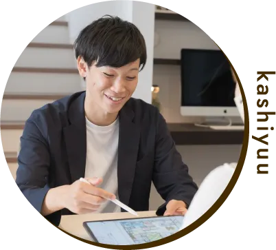 業界でも珍しい土地と建物の両面から的確なアドバイスができる、家づくりのプロフェッショナル“かしゆう”にオンラインで相談できるサービスです。